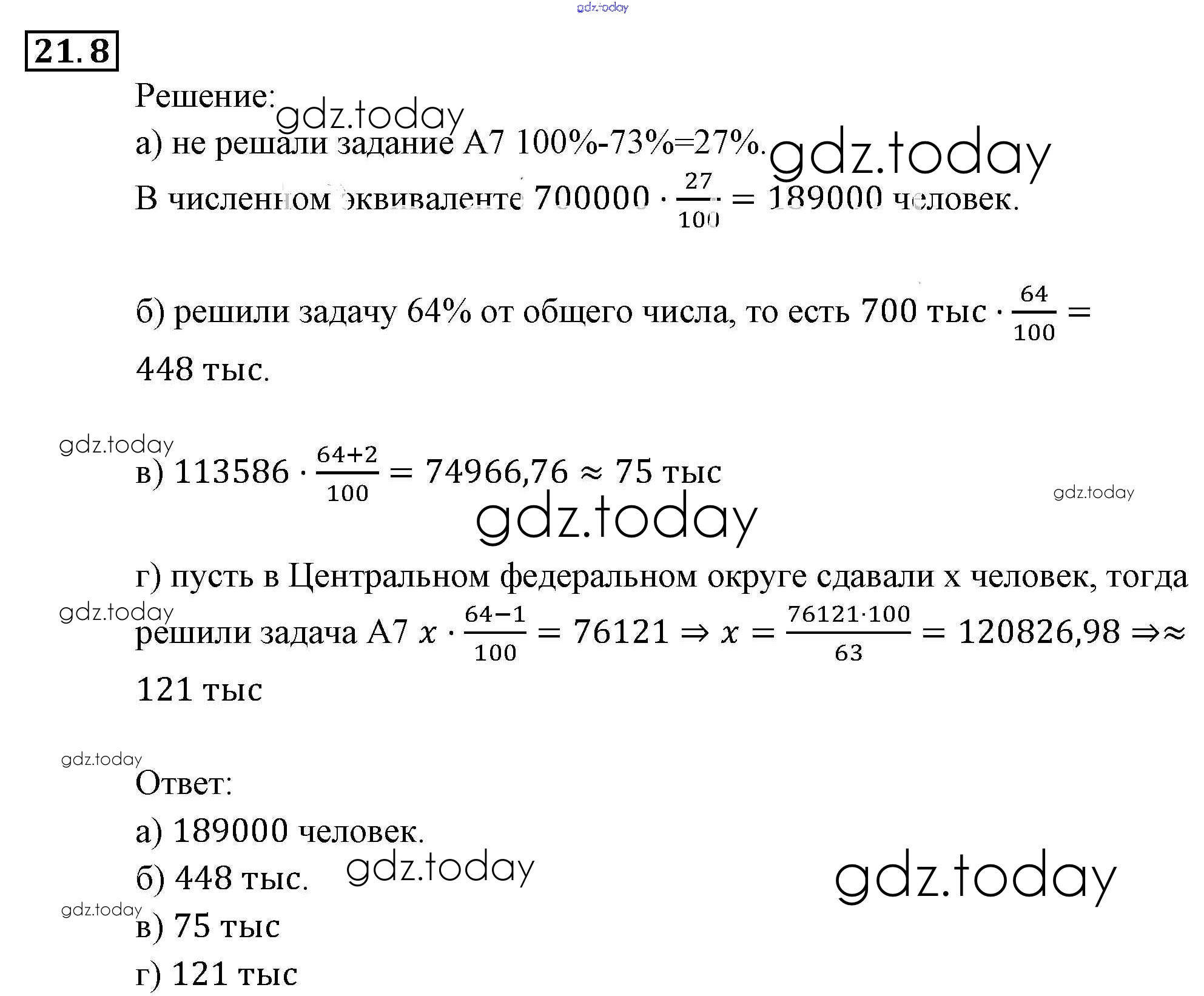 Ответы к § 21. Экспериментальные данные и вероятности событий Глава 5. Элементы комбинаторики, статистики и теории вероятностей 8 Задачнику по Алгебре для 9 класса Мордкович, Александрова Мнемозина 2010