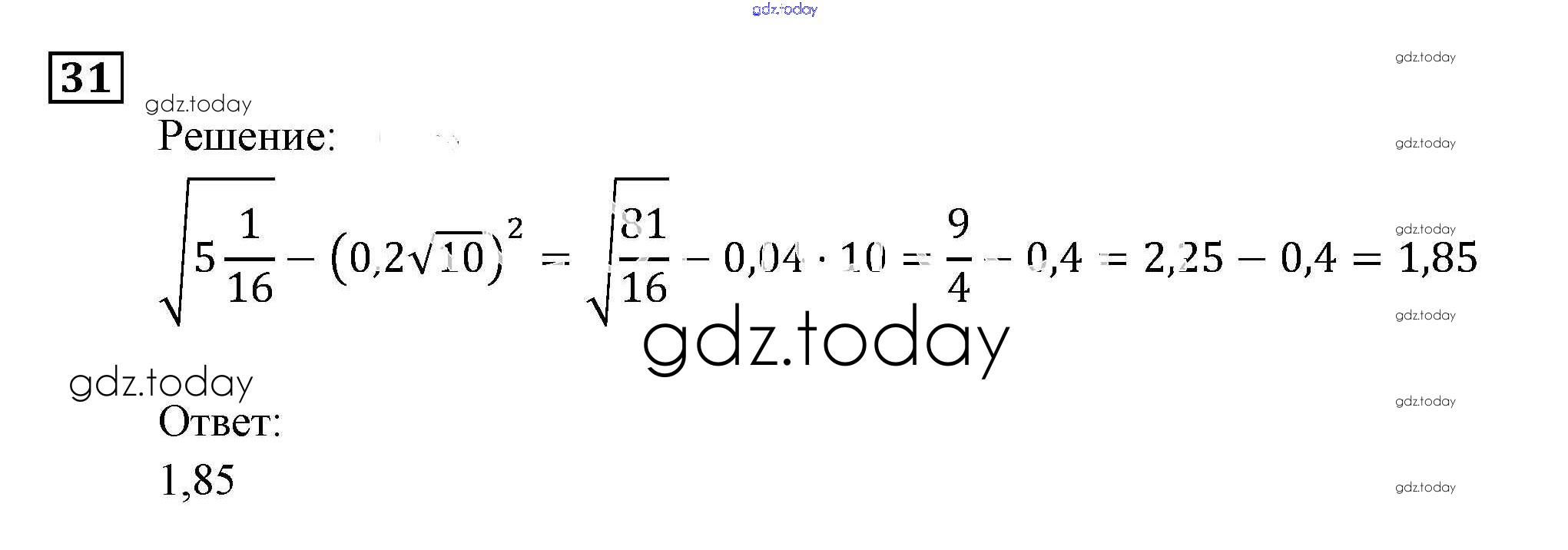 Ответы к Числовые выражения Итоговое повторение 31 Задачнику по Алгебре для 9 класса Мордкович, Александрова Мнемозина 2010