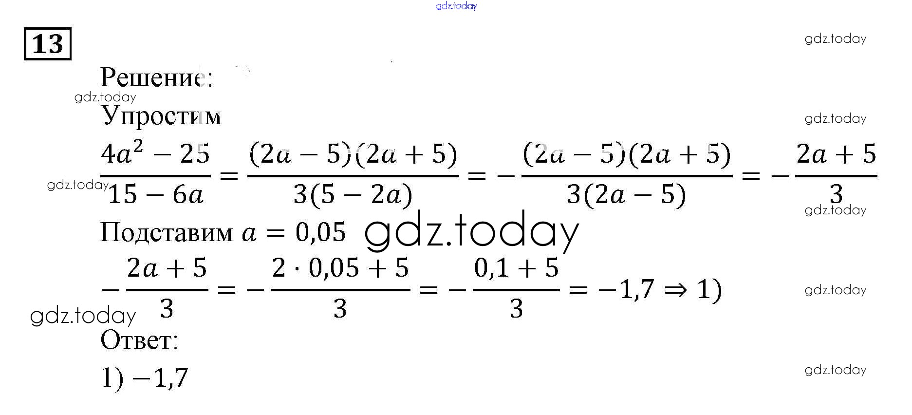 Ответы к Алгебраические выражения Итоговое повторение 13 Задачнику по Алгебре для 9 класса Мордкович, Александрова Мнемозина 2010