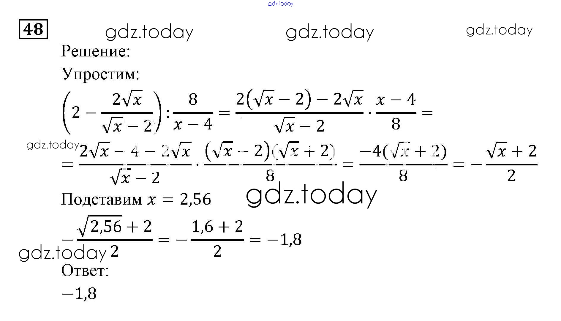 На страницах сайта gdz.today вы найдете учебный и вспомогательный материал, направленный на улучшения знаний школьной программы. ГДЗ - онлайн мир знаний Алгебраические выражения Итоговое повторение 48 Задачнику по Алгебре для 9 класса Мордкович, Александрова Мнемозина 2010