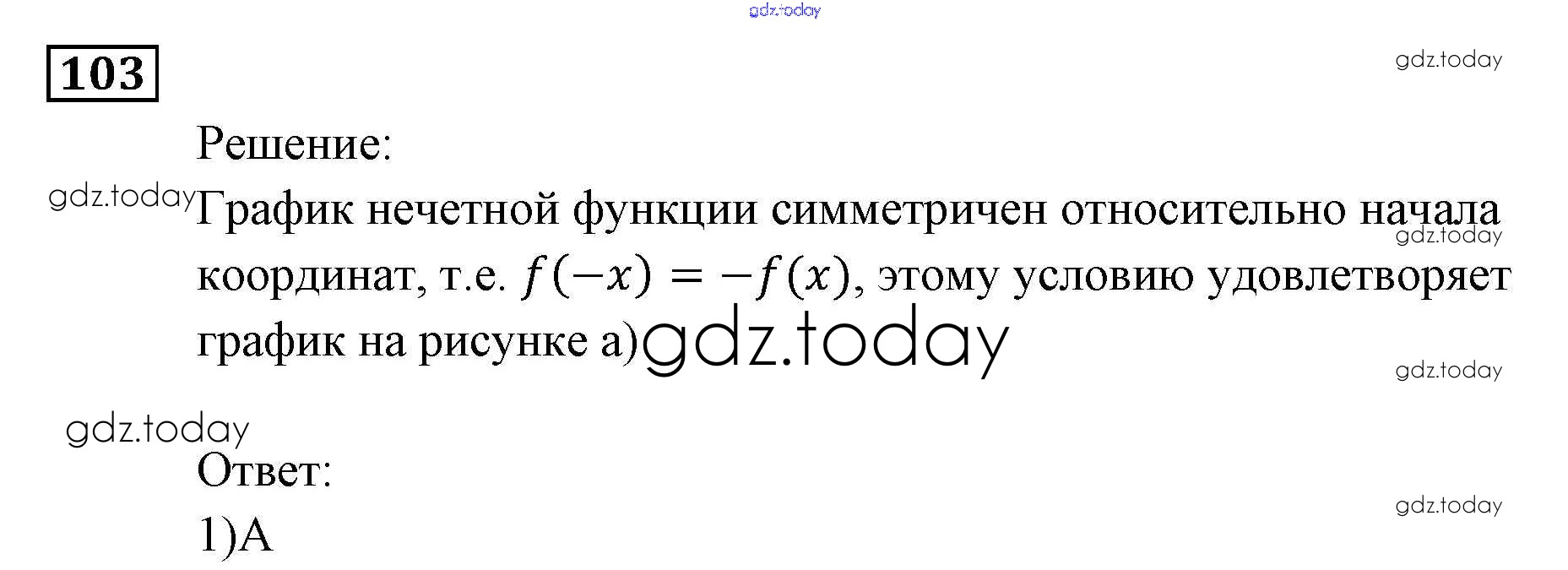 На страницах сайта gdz.today вы найдете учебный и вспомогательный материал, направленный на улучшения знаний школьной программы. ГДЗ - онлайн мир знаний Функции и графики Итоговое повторение 103 Задачнику по Алгебре для 9 класса Мордкович, Александрова Мнемозина 2010
