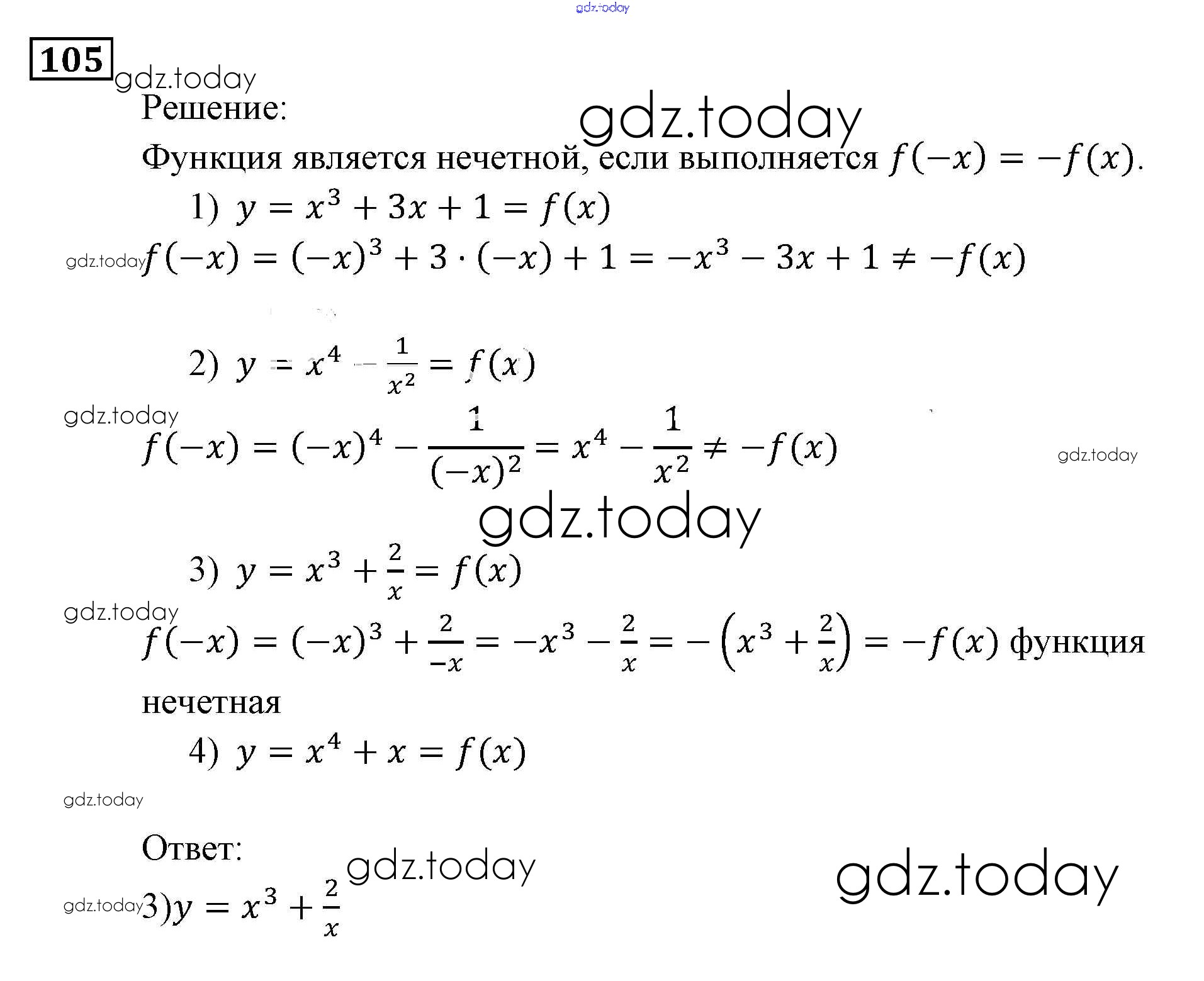 На страницах сайта gdz.today вы найдете учебный и вспомогательный материал, направленный на улучшения знаний школьной программы. ГДЗ - онлайн мир знаний Функции и графики Итоговое повторение 105 Задачнику по Алгебре для 9 класса Мордкович, Александрова Мнемозина 2010