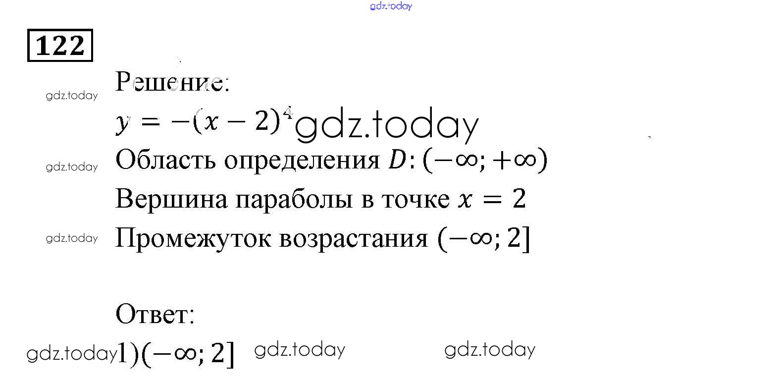 На страницах сайта gdz.today вы найдете учебный и вспомогательный материал, направленный на улучшения знаний школьной программы. ГДЗ - онлайн мир знаний Функции и графики Итоговое повторение 122 Задачнику по Алгебре для 9 класса Мордкович, Александрова Мнемозина 2010