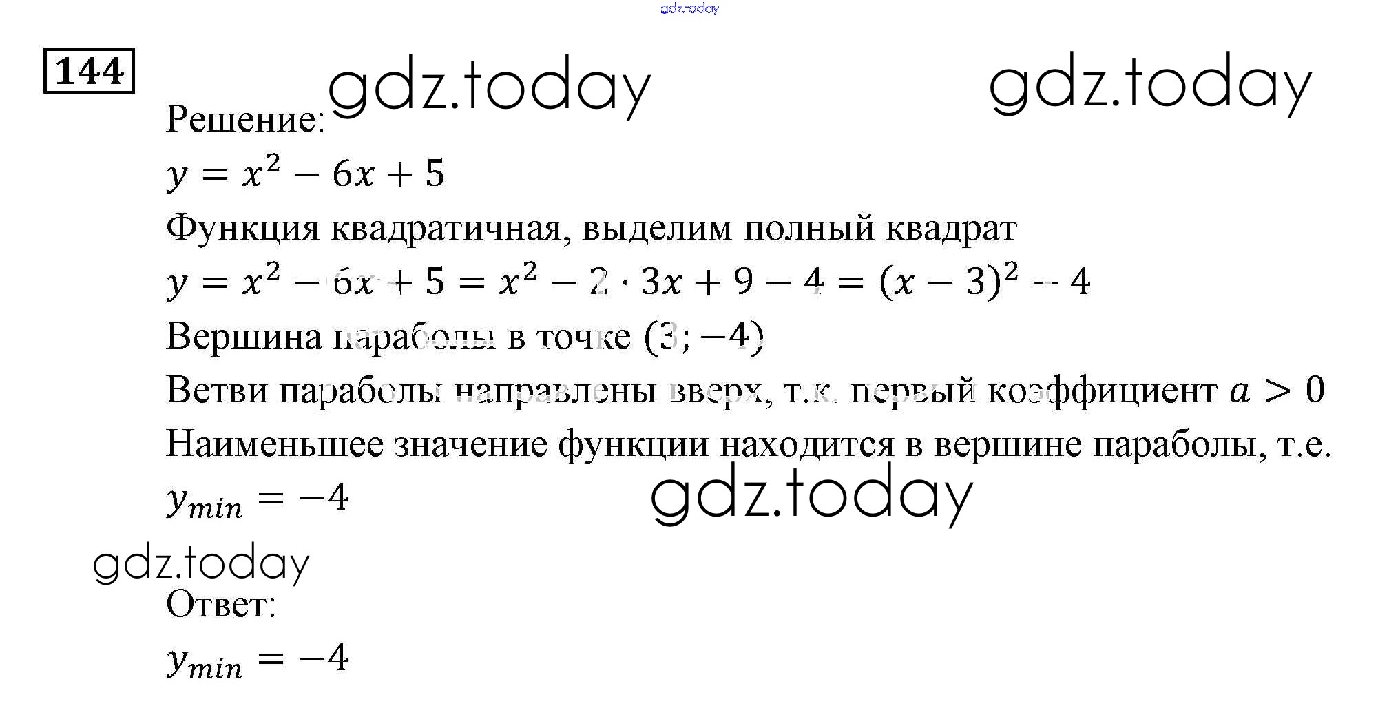 На страницах сайта gdz.today вы найдете учебный и вспомогательный материал, направленный на улучшения знаний школьной программы. ГДЗ - онлайн мир знаний Функции и графики Итоговое повторение 144 Задачнику по Алгебре для 9 класса Мордкович, Александрова Мнемозина 2010