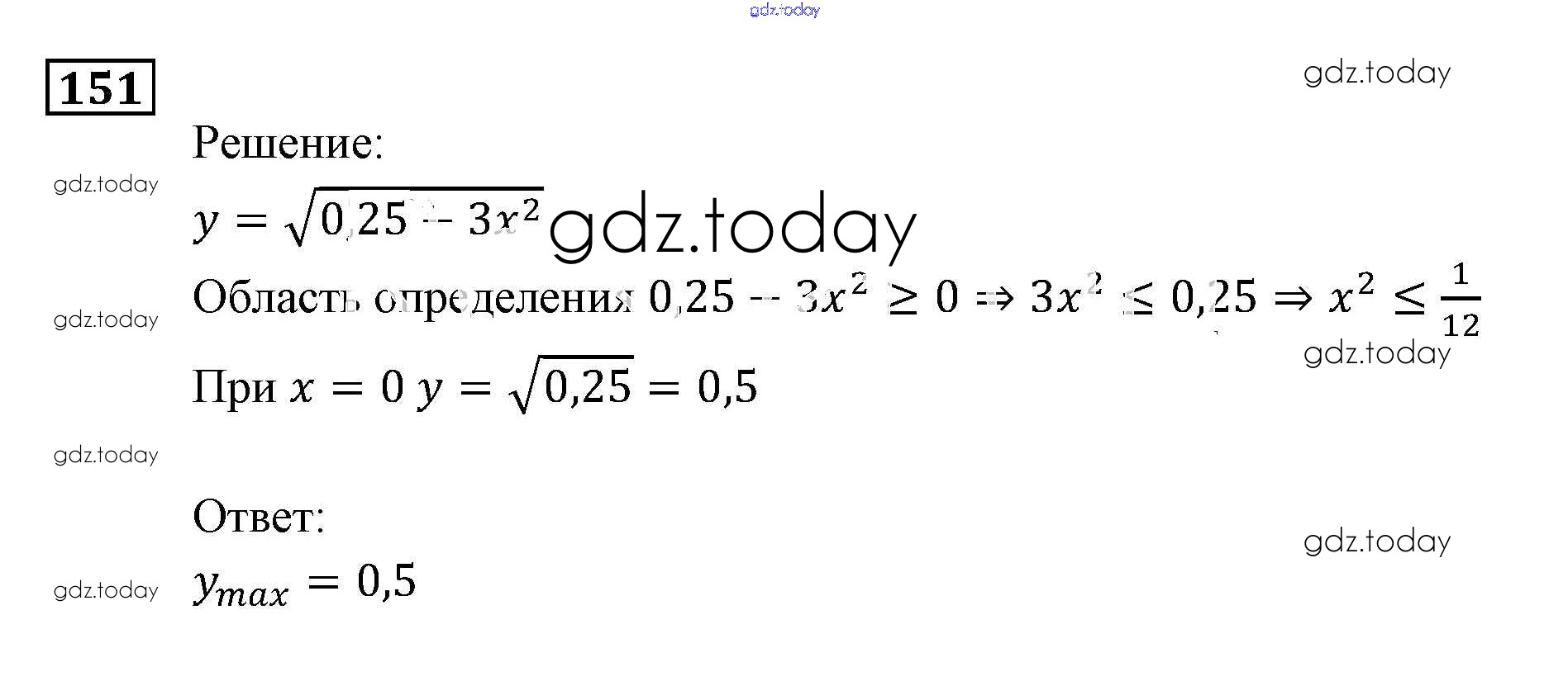 На страницах сайта gdz.today вы найдете учебный и вспомогательный материал, направленный на улучшения знаний школьной программы. ГДЗ - онлайн мир знаний Функции и графики Итоговое повторение 151 Задачнику по Алгебре для 9 класса Мордкович, Александрова Мнемозина 2010
