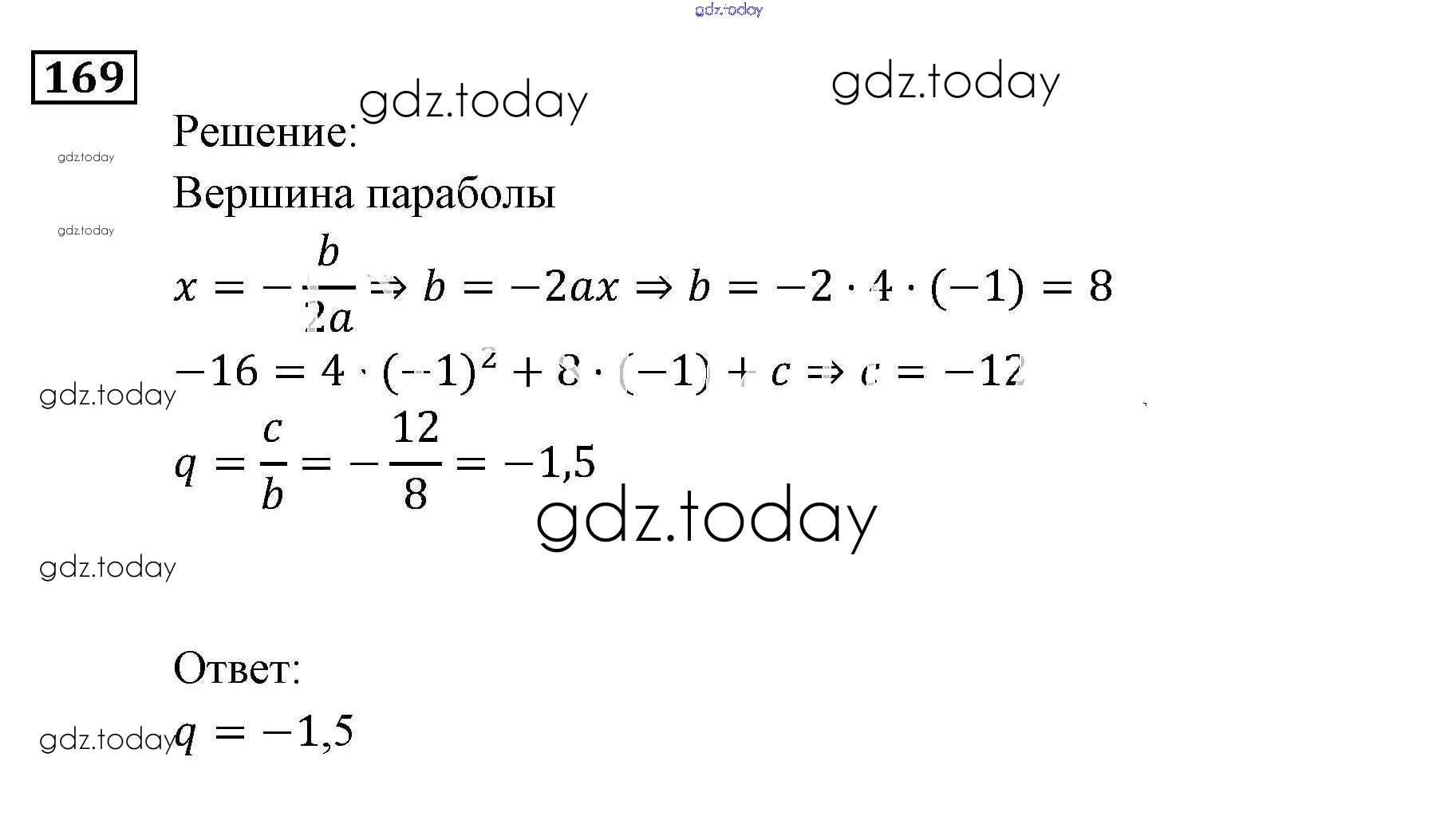 На страницах сайта gdz.today вы найдете учебный и вспомогательный материал, направленный на улучшения знаний школьной программы. ГДЗ - онлайн мир знаний Функции и графики Итоговое повторение 169 Задачнику по Алгебре для 9 класса Мордкович, Александрова Мнемозина 2010