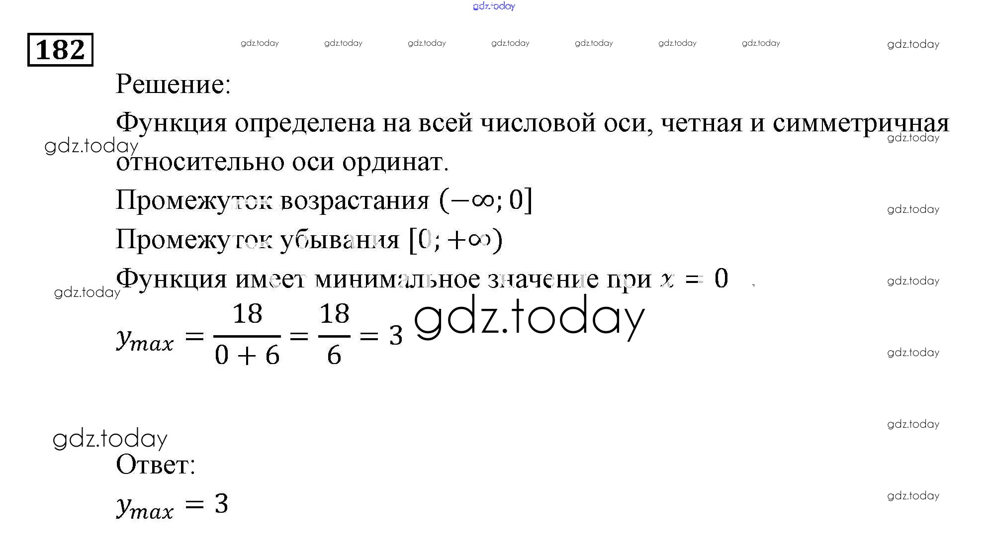 На страницах сайта gdz.today вы найдете учебный и вспомогательный материал, направленный на улучшения знаний школьной программы. ГДЗ - онлайн мир знаний Функции и графики Итоговое повторение 182 Задачнику по Алгебре для 9 класса Мордкович, Александрова Мнемозина 2010