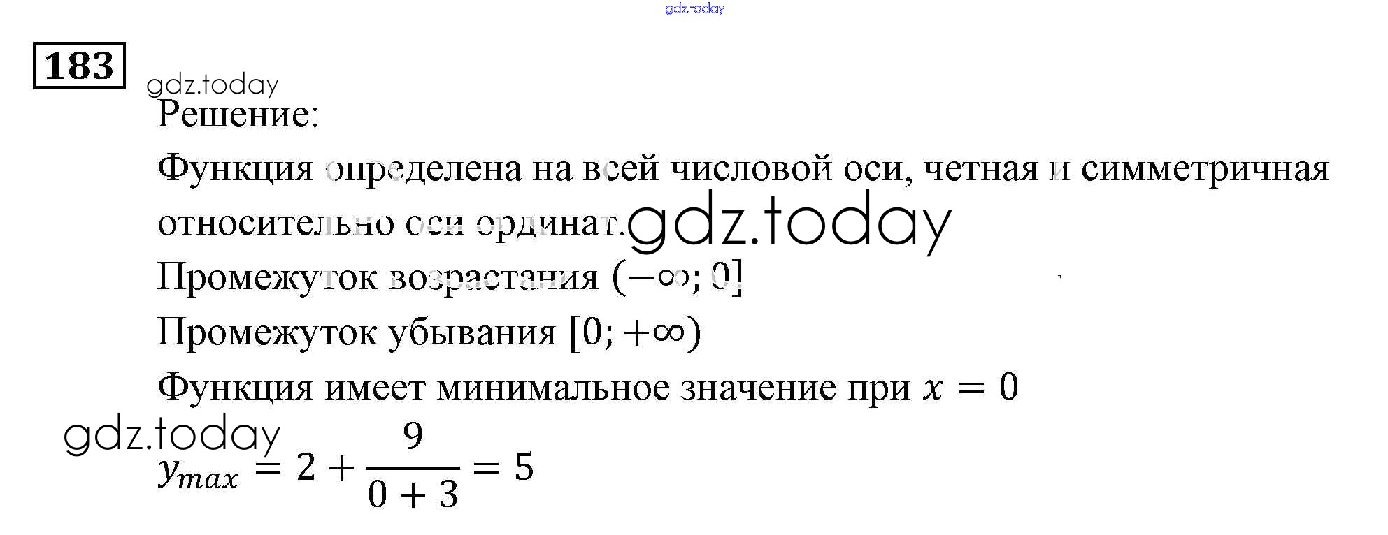На страницах сайта gdz.today вы найдете учебный и вспомогательный материал, направленный на улучшения знаний школьной программы. ГДЗ - онлайн мир знаний Функции и графики Итоговое повторение 183 Задачнику по Алгебре для 9 класса Мордкович, Александрова Мнемозина 2010