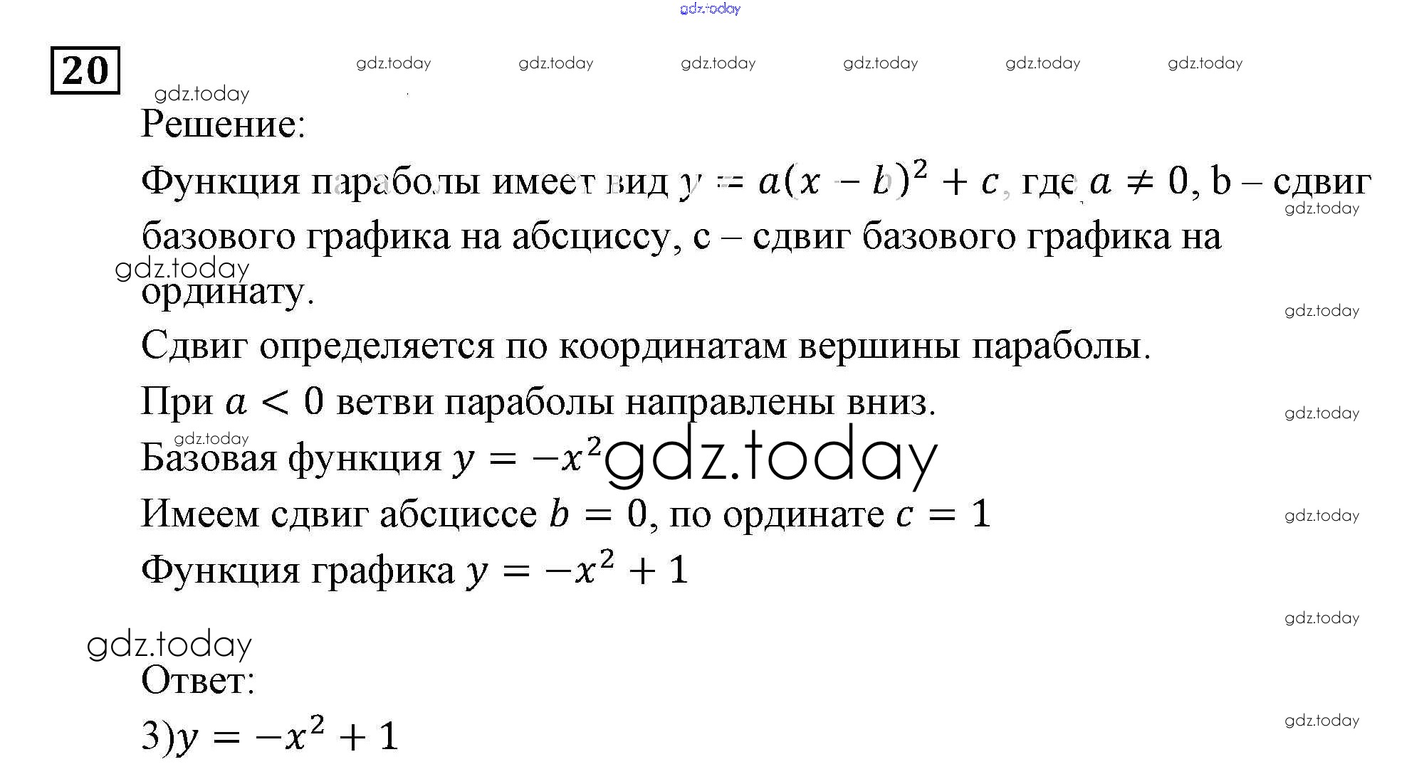 На страницах сайта gdz.today вы найдете учебный и вспомогательный материал, направленный на улучшения знаний школьной программы. ГДЗ - онлайн мир знаний Функции и графики Итоговое повторение 20 Задачнику по Алгебре для 9 класса Мордкович, Александрова Мнемозина 2010