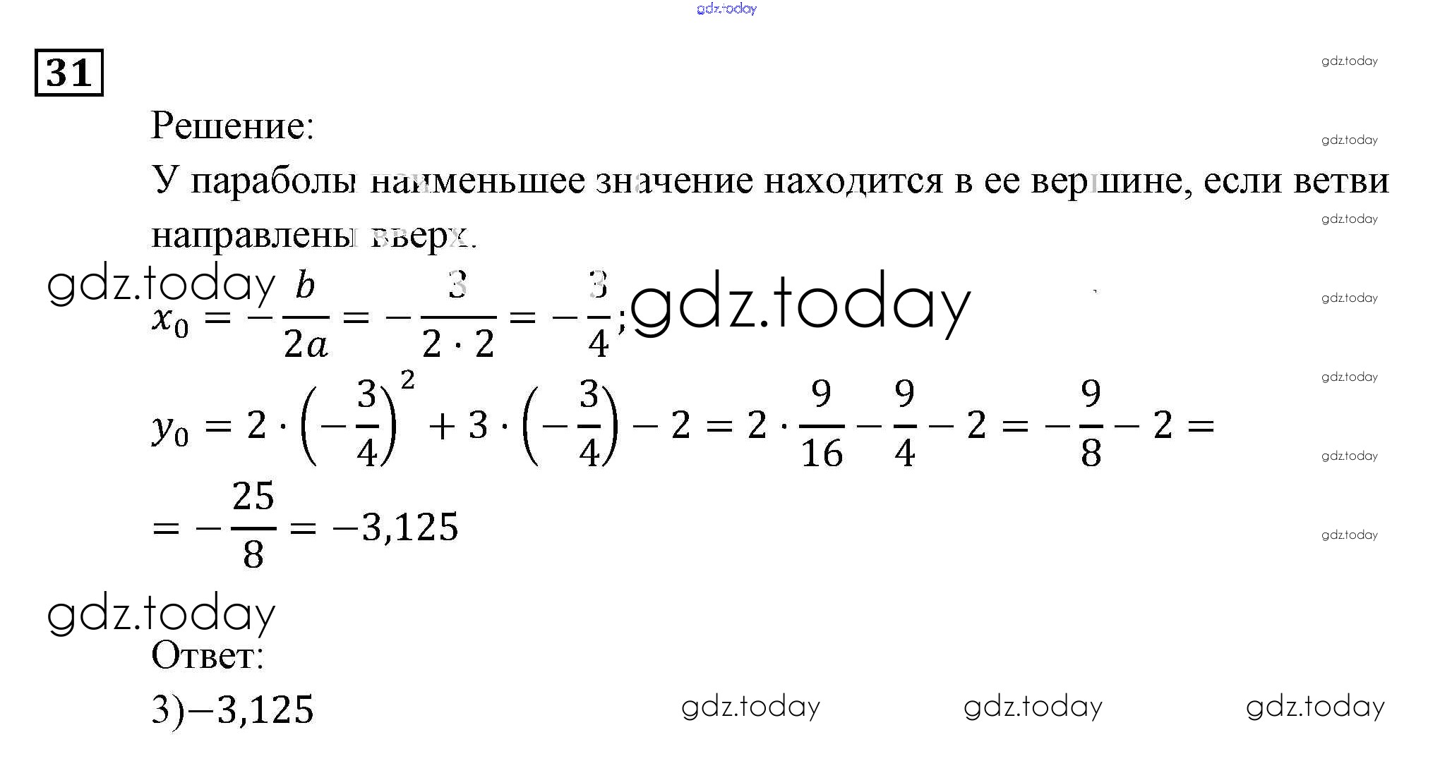 На страницах сайта gdz.today вы найдете учебный и вспомогательный материал, направленный на улучшения знаний школьной программы. ГДЗ - онлайн мир знаний Функции и графики Итоговое повторение 31 Задачнику по Алгебре для 9 класса Мордкович, Александрова Мнемозина 2010