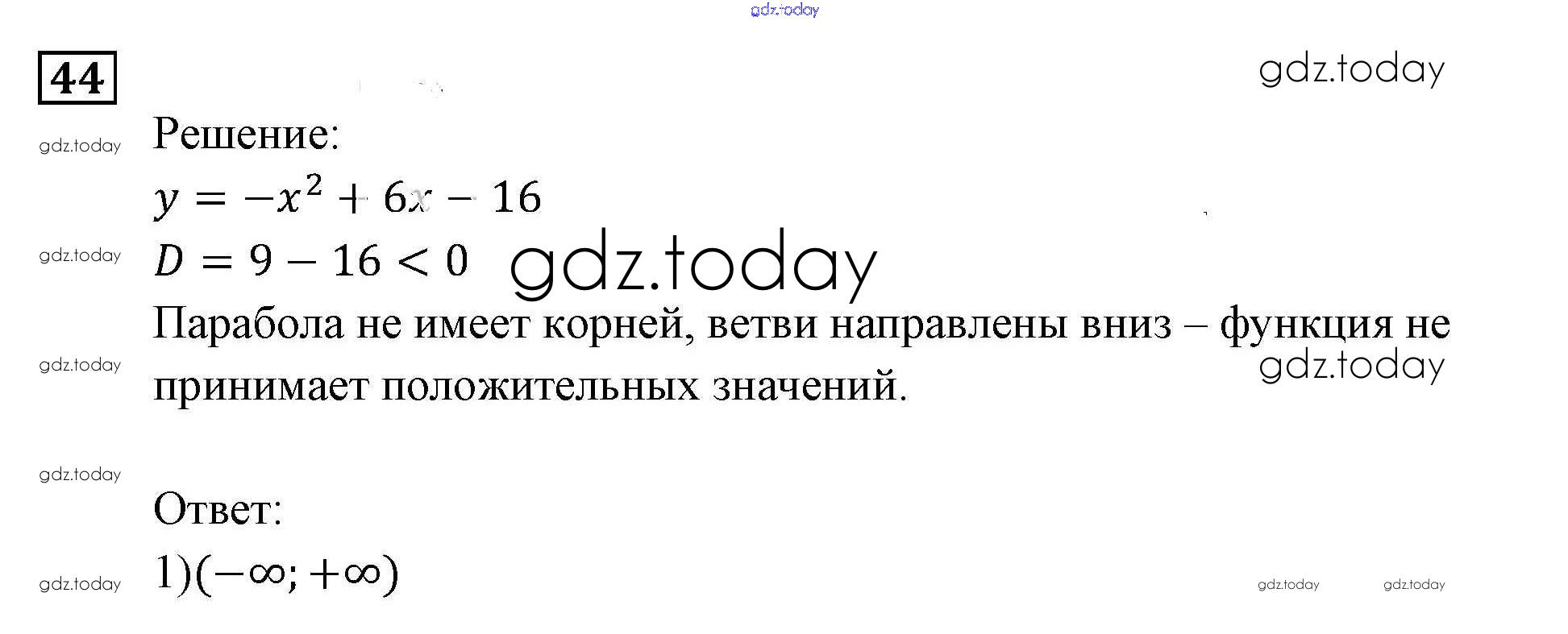 На страницах сайта gdz.today вы найдете учебный и вспомогательный материал, направленный на улучшения знаний школьной программы. ГДЗ - онлайн мир знаний Функции и графики Итоговое повторение 44 Задачнику по Алгебре для 9 класса Мордкович, Александрова Мнемозина 2010