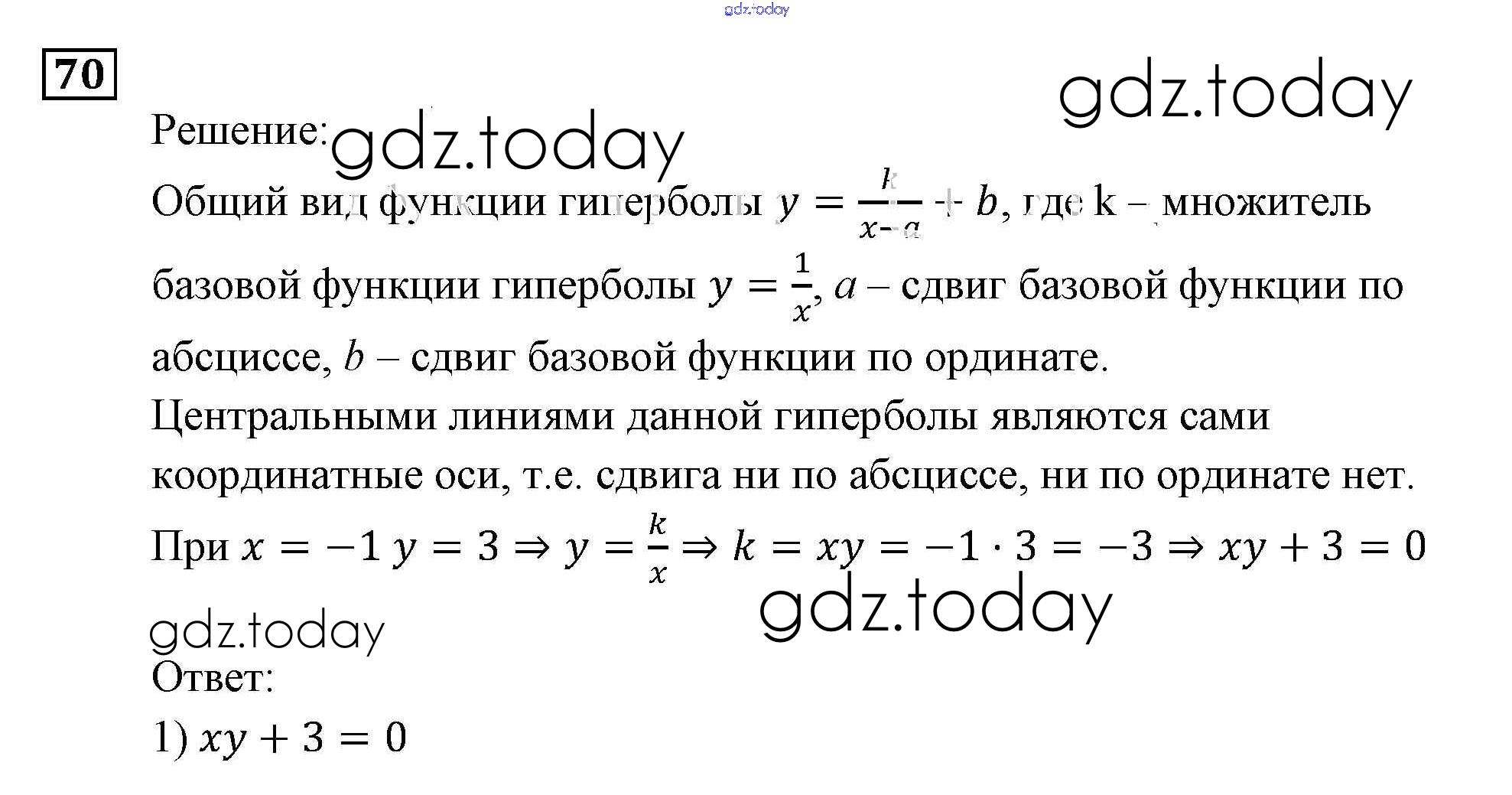 На страницах сайта gdz.today вы найдете учебный и вспомогательный материал, направленный на улучшения знаний школьной программы. ГДЗ - онлайн мир знаний Функции и графики Итоговое повторение 70 Задачнику по Алгебре для 9 класса Мордкович, Александрова Мнемозина 2010