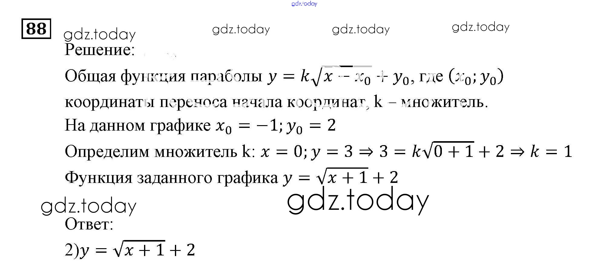 На страницах сайта gdz.today вы найдете учебный и вспомогательный материал, направленный на улучшения знаний школьной программы. ГДЗ - онлайн мир знаний Функции и графики Итоговое повторение 88 Задачнику по Алгебре для 9 класса Мордкович, Александрова Мнемозина 2010