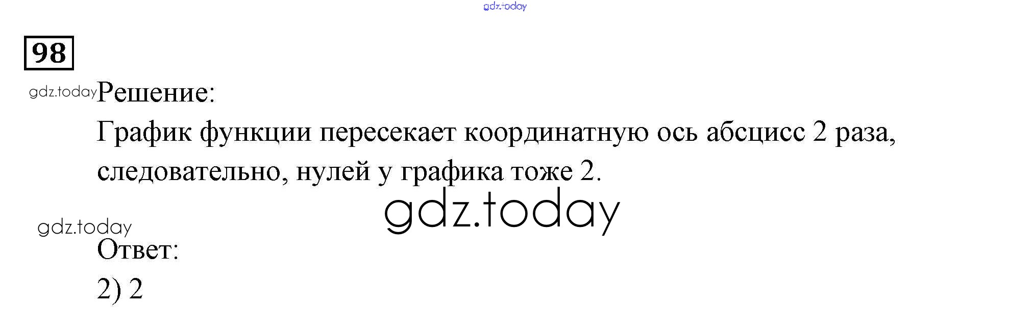На страницах сайта gdz.today вы найдете учебный и вспомогательный материал, направленный на улучшения знаний школьной программы. ГДЗ - онлайн мир знаний Функции и графики Итоговое повторение 98 Задачнику по Алгебре для 9 класса Мордкович, Александрова Мнемозина 2010
