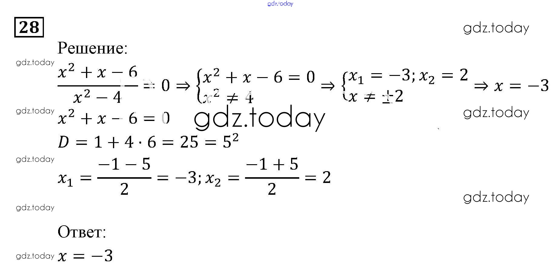 На страницах сайта gdz.today вы найдете учебный и вспомогательный материал, направленный на улучшения знаний школьной программы. ГДЗ - онлайн мир знаний Уравнения и системы уравнений Итоговое повторение 28 Задачнику по Алгебре для 9 класса Мордкович, Александрова Мнемозина 2010