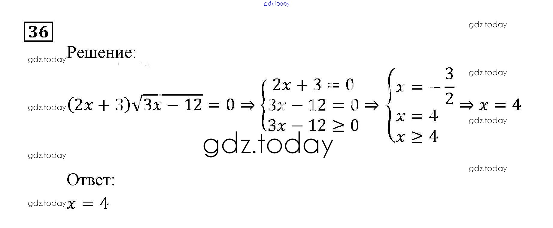 На страницах сайта gdz.today вы найдете учебный и вспомогательный материал, направленный на улучшения знаний школьной программы. ГДЗ - онлайн мир знаний Уравнения и системы уравнений Итоговое повторение 36 Задачнику по Алгебре для 9 класса Мордкович, Александрова Мнемозина 2010