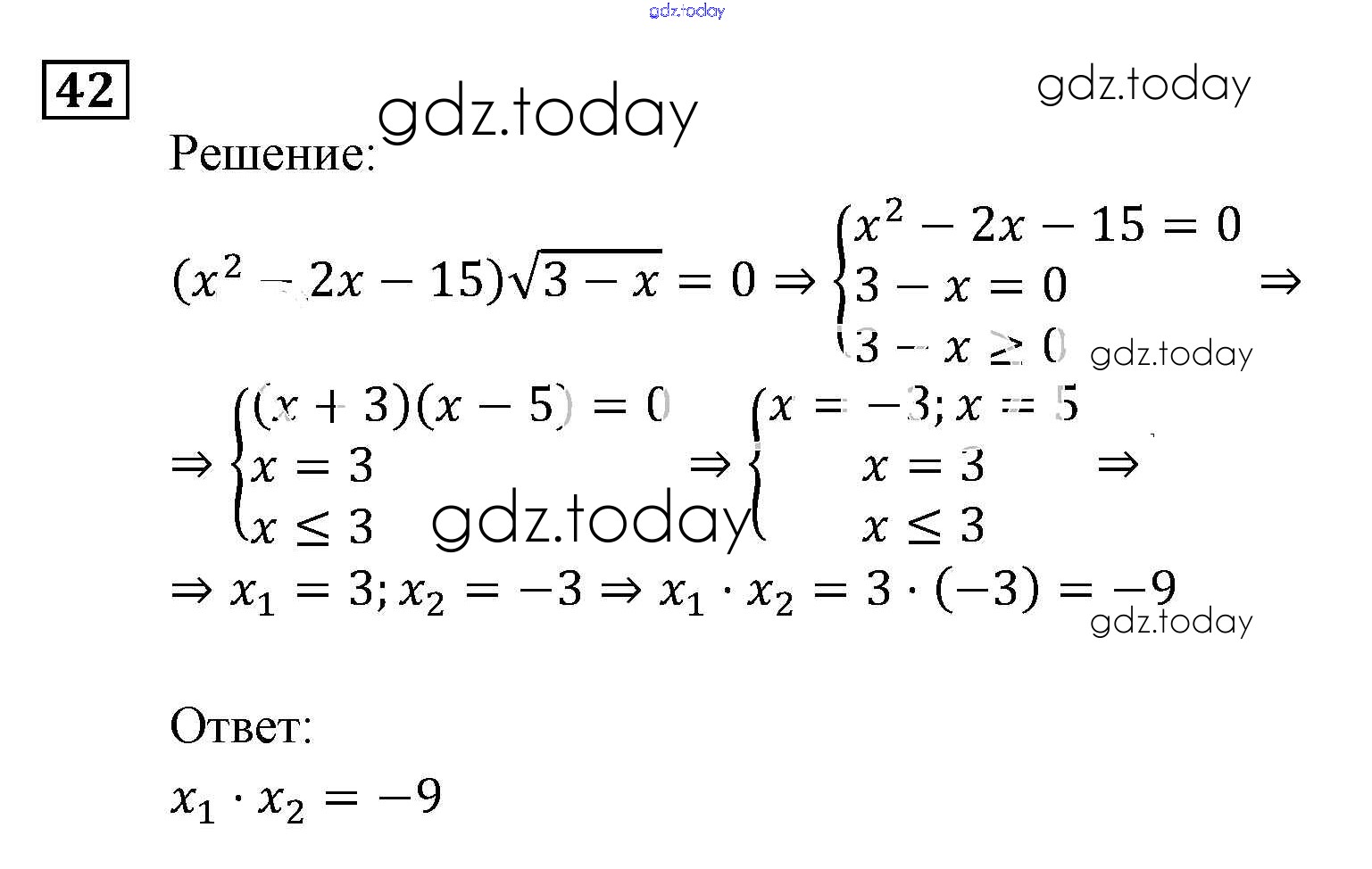На страницах сайта gdz.today вы найдете учебный и вспомогательный материал, направленный на улучшения знаний школьной программы. ГДЗ - онлайн мир знаний Уравнения и системы уравнений Итоговое повторение 42 Задачнику по Алгебре для 9 класса Мордкович, Александрова Мнемозина 2010