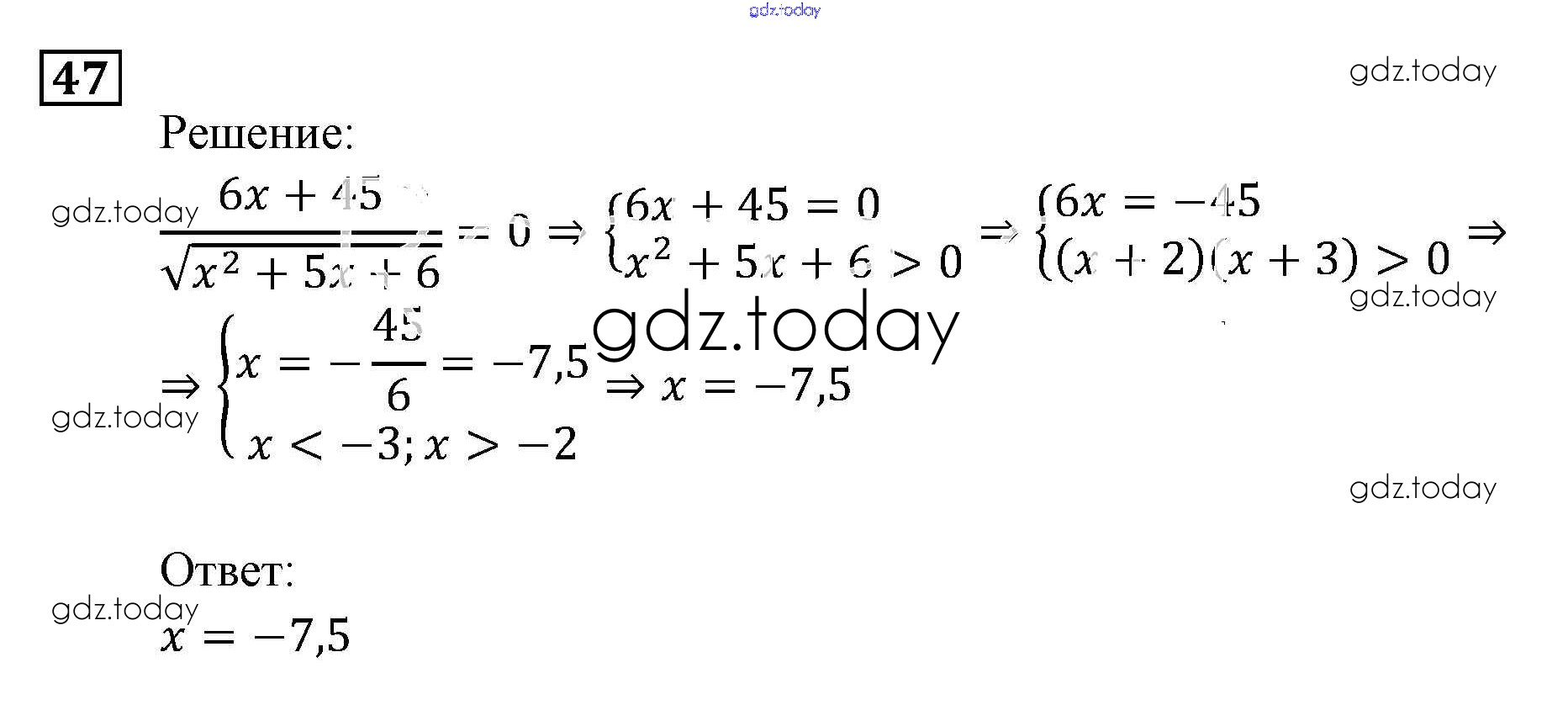 На страницах сайта gdz.today вы найдете учебный и вспомогательный материал, направленный на улучшения знаний школьной программы. ГДЗ - онлайн мир знаний Уравнения и системы уравнений Итоговое повторение 47 Задачнику по Алгебре для 9 класса Мордкович, Александрова Мнемозина 2010
