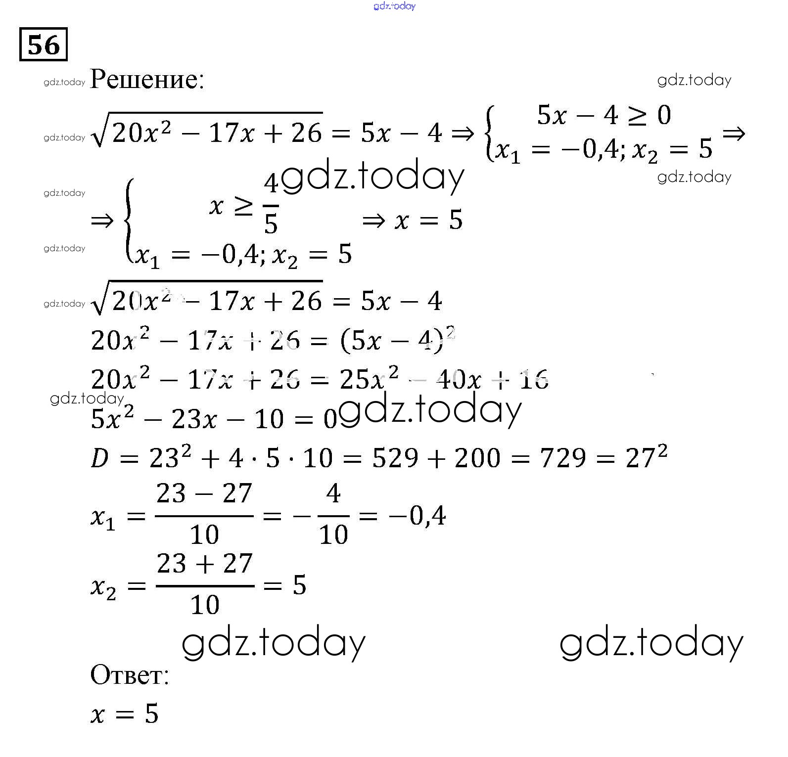 На страницах сайта gdz.today вы найдете учебный и вспомогательный материал, направленный на улучшения знаний школьной программы. ГДЗ - онлайн мир знаний Уравнения и системы уравнений Итоговое повторение 56 Задачнику по Алгебре для 9 класса Мордкович, Александрова Мнемозина 2010