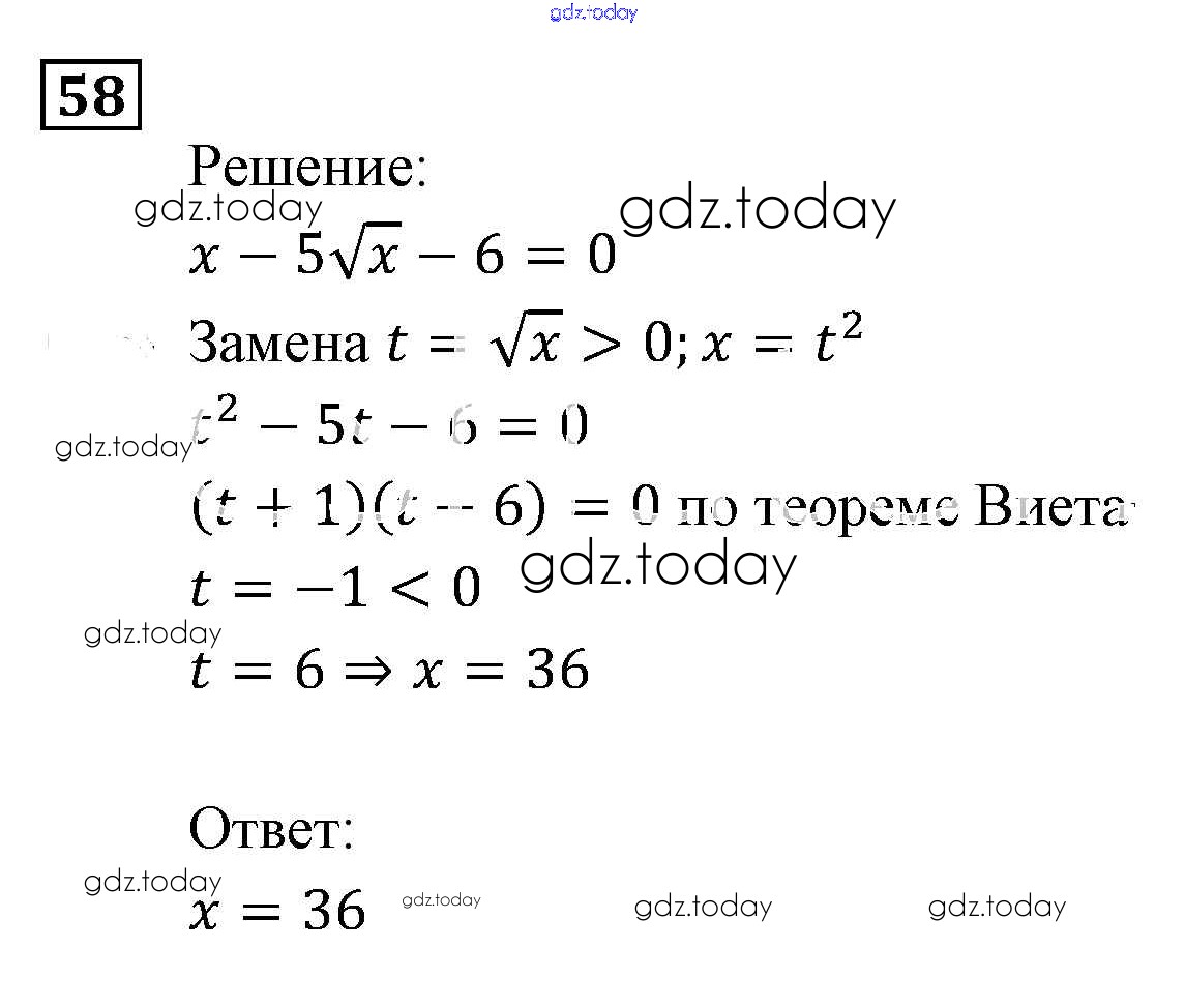 На страницах сайта gdz.today вы найдете учебный и вспомогательный материал, направленный на улучшения знаний школьной программы. ГДЗ - онлайн мир знаний Уравнения и системы уравнений Итоговое повторение 58 Задачнику по Алгебре для 9 класса Мордкович, Александрова Мнемозина 2010
