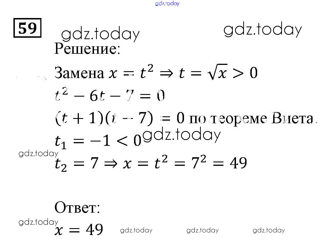 На страницах сайта gdz.today вы найдете учебный и вспомогательный материал, направленный на улучшения знаний школьной программы. ГДЗ - онлайн мир знаний Уравнения и системы уравнений Итоговое повторение 59 Задачнику по Алгебре для 9 класса Мордкович, Александрова Мнемозина 2010