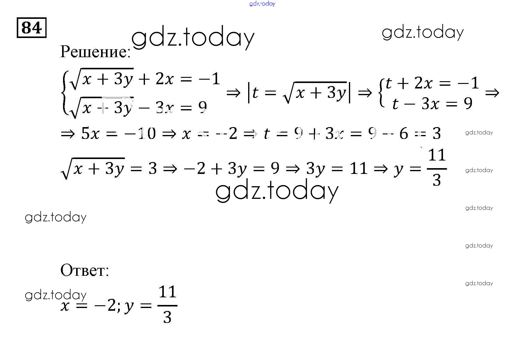 На страницах сайта gdz.today вы найдете учебный и вспомогательный материал, направленный на улучшения знаний школьной программы. ГДЗ - онлайн мир знаний Уравнения и системы уравнений Итоговое повторение 84 Задачнику по Алгебре для 9 класса Мордкович, Александрова Мнемозина 2010