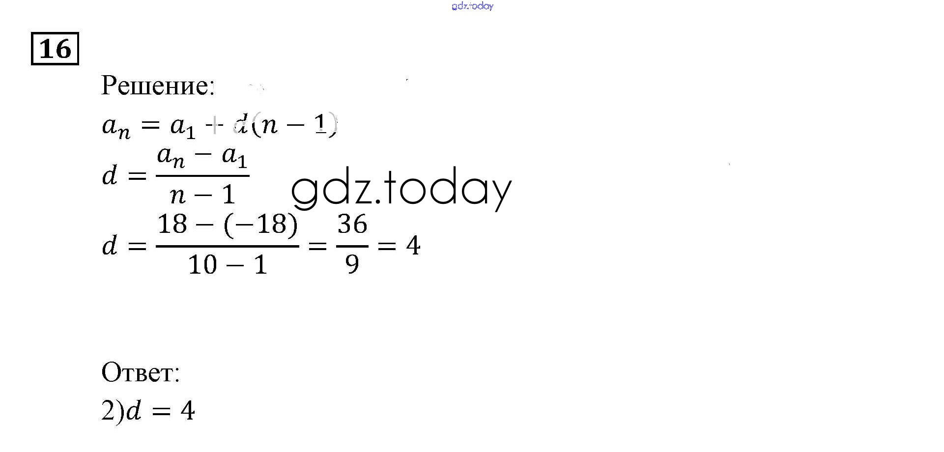 На страницах сайта gdz.today вы найдете учебный и вспомогательный материал, направленный на улучшения знаний школьной программы. ГДЗ - онлайн мир знаний Арифметическая и геометрическая прогрессии Итоговое повторение 16 Задачнику по Алгебре для 9 класса Мордкович, Александрова Мнемозина 2010