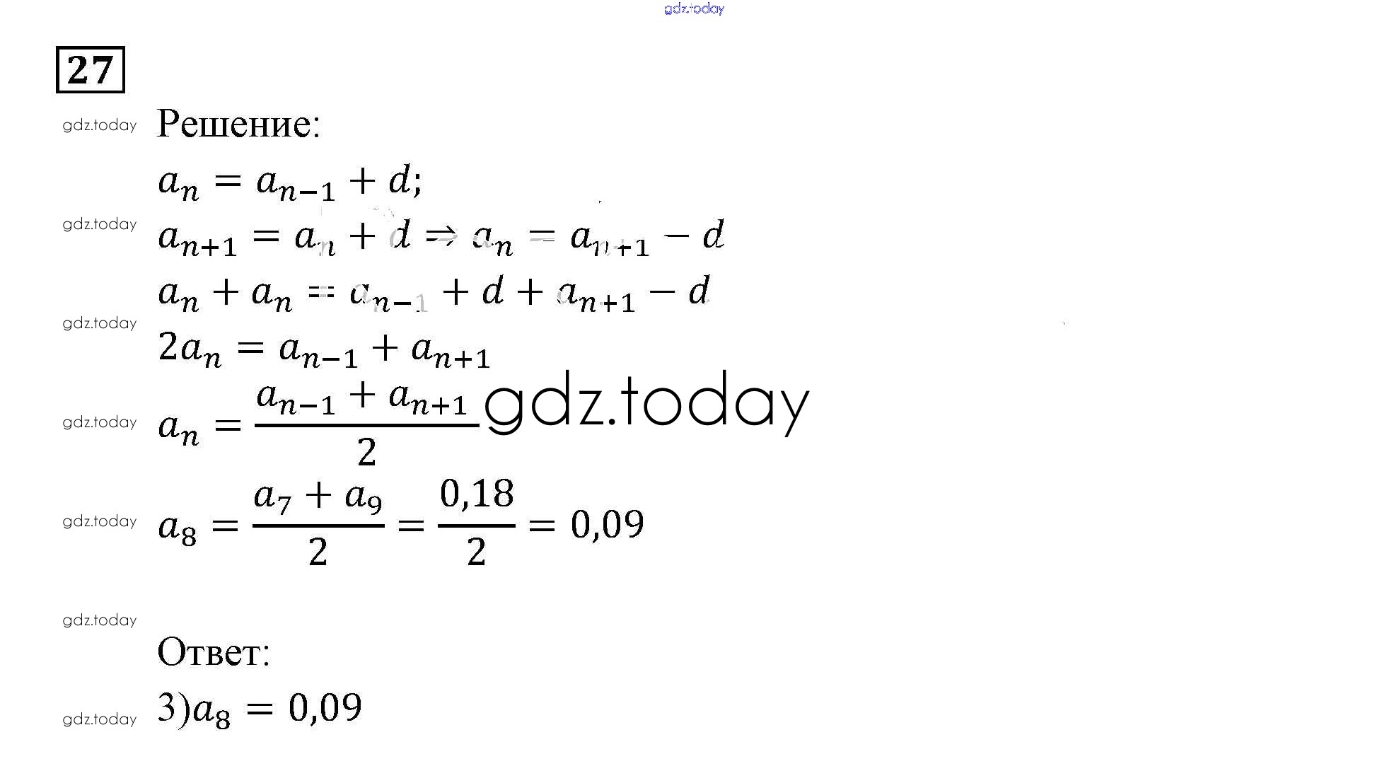 На страницах сайта gdz.today вы найдете учебный и вспомогательный материал, направленный на улучшения знаний школьной программы. ГДЗ - онлайн мир знаний Арифметическая и геометрическая прогрессии Итоговое повторение 27 Задачнику по Алгебре для 9 класса Мордкович, Александрова Мнемозина 2010