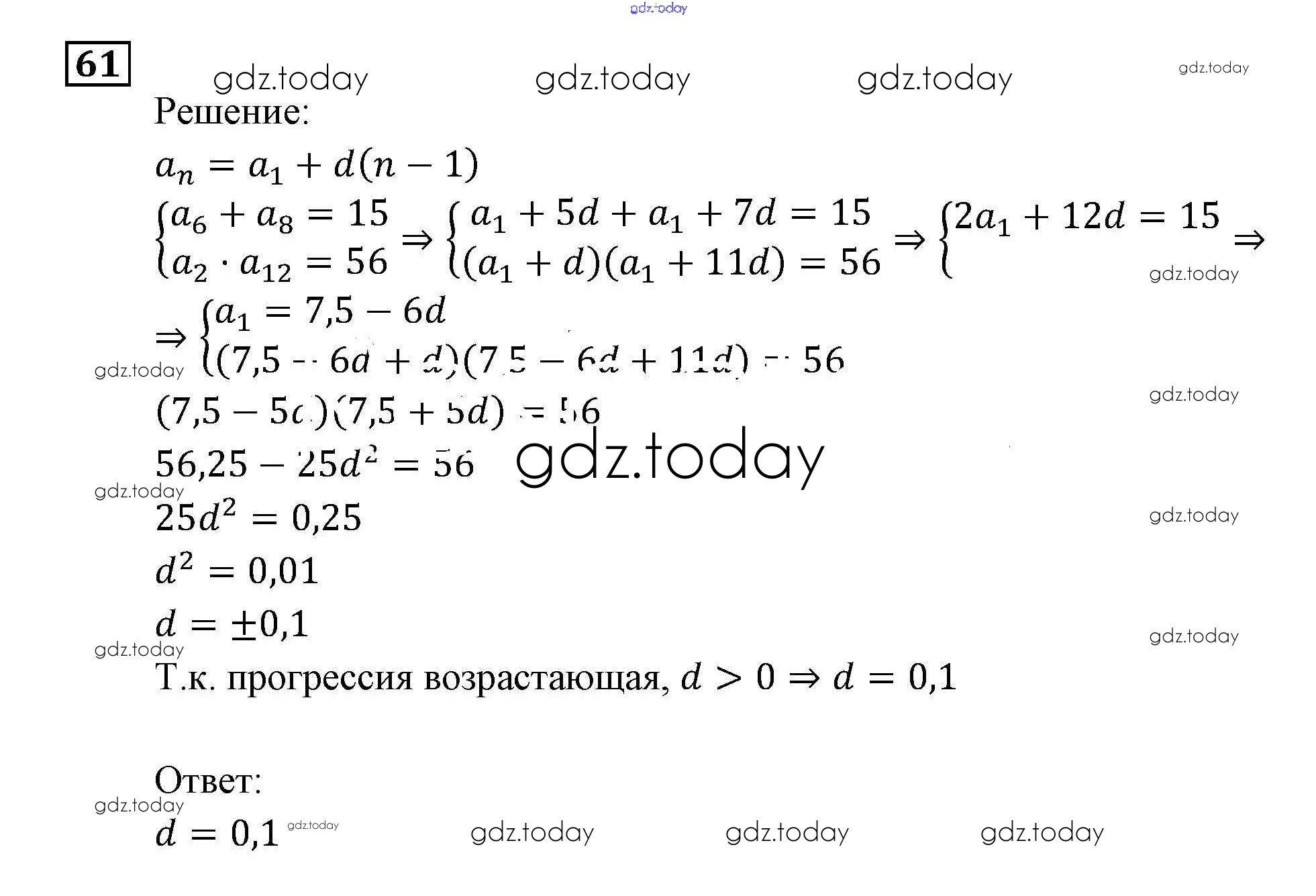 На страницах сайта gdz.today вы найдете учебный и вспомогательный материал, направленный на улучшения знаний школьной программы. ГДЗ - онлайн мир знаний Арифметическая и геометрическая прогрессии Итоговое повторение 61 Задачнику по Алгебре для 9 класса Мордкович, Александрова Мнемозина 2010