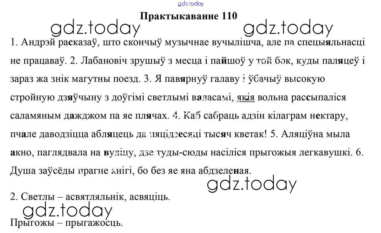 На страницах сайта gdz.today вы найдете учебный и вспомогательный материал, направленный на улучшения знаний школьной программы. ГДЗ - онлайн мир знаний Рашальнік да практыкаванняў 110 Учебнику по Белорусскому языку для 9 класса Валочка, Васюковіч Национальный институт образования 2019