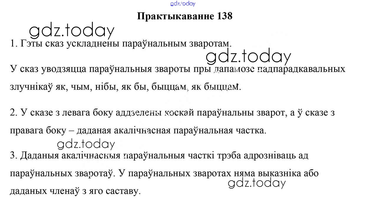 На страницах сайта gdz.today вы найдете учебный и вспомогательный материал, направленный на улучшения знаний школьной программы. ГДЗ - онлайн мир знаний Рашальнік да практыкаванняў 138 Учебнику по Белорусскому языку для 9 класса Валочка, Васюковіч Национальный институт образования 2019