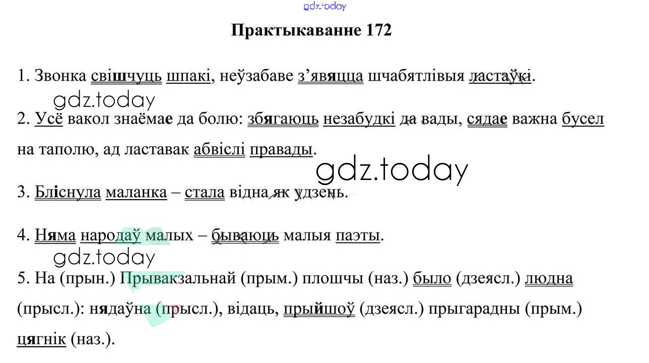 На страницах сайта gdz.today вы найдете учебный и вспомогательный материал, направленный на улучшения знаний школьной программы. ГДЗ - онлайн мир знаний Рашальнік да практыкаванняў 172 Учебнику по Белорусскому языку для 9 класса Валочка, Васюковіч Национальный институт образования 2019