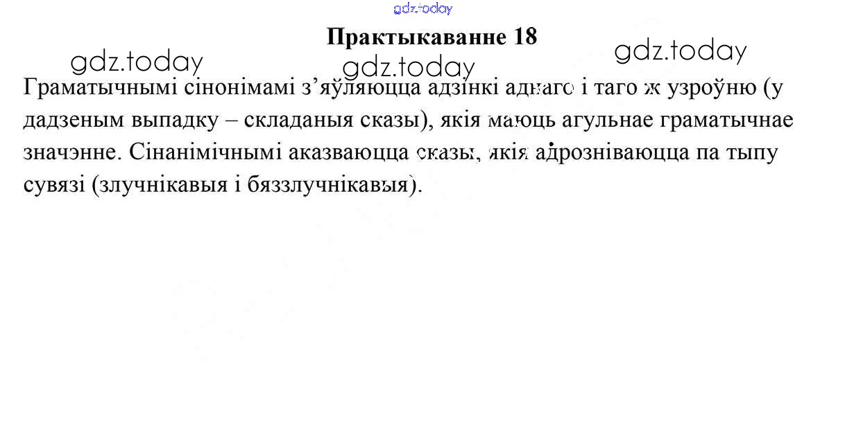 На страницах сайта gdz.today вы найдете учебный и вспомогательный материал, направленный на улучшения знаний школьной программы. ГДЗ - онлайн мир знаний Рашальнік да практыкаванняў 18 Учебнику по Белорусскому языку для 9 класса Валочка, Васюковіч Национальный институт образования 2019