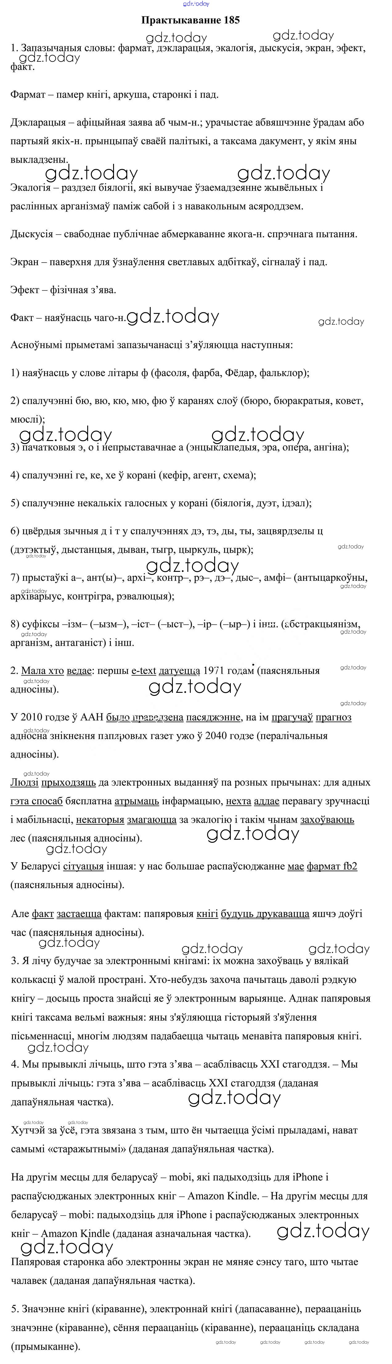На страницах сайта gdz.today вы найдете учебный и вспомогательный материал, направленный на улучшения знаний школьной программы. ГДЗ - онлайн мир знаний Рашальнік да практыкаванняў 185 Учебнику по Белорусскому языку для 9 класса Валочка, Васюковіч Национальный институт образования 2019