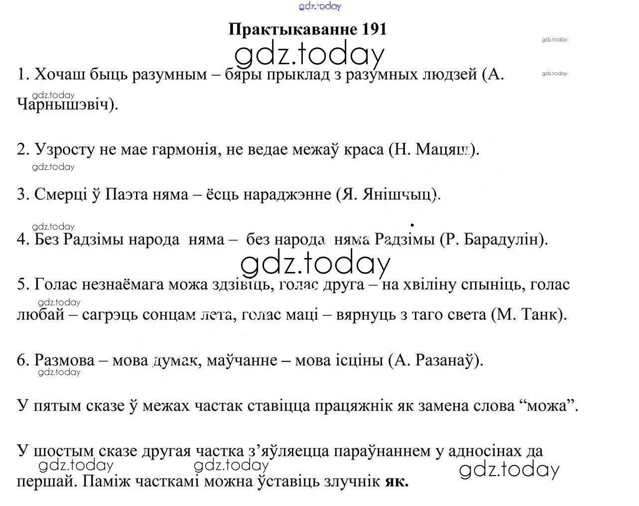 На страницах сайта gdz.today вы найдете учебный и вспомогательный материал, направленный на улучшения знаний школьной программы. ГДЗ - онлайн мир знаний Рашальнік да практыкаванняў 191 Учебнику по Белорусскому языку для 9 класса Валочка, Васюковіч Национальный институт образования 2019