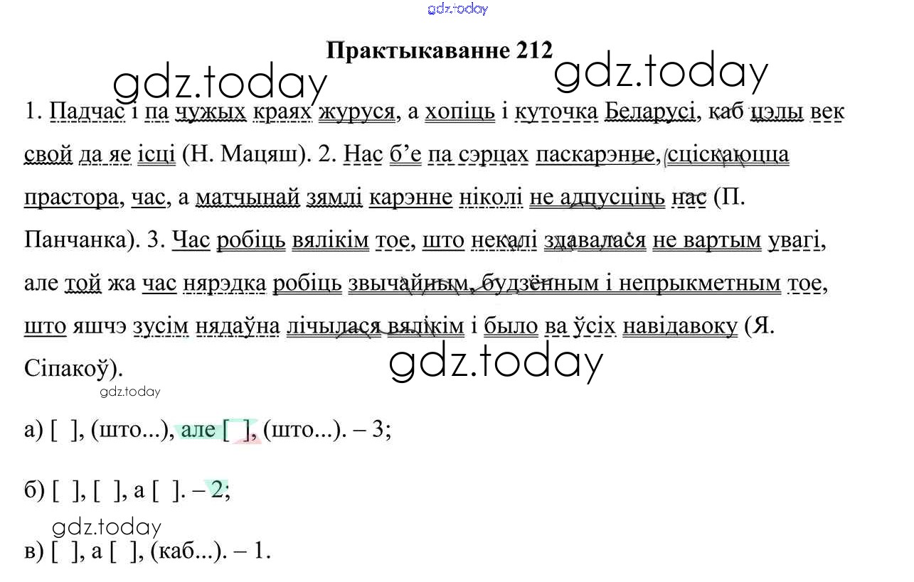 На страницах сайта gdz.today вы найдете учебный и вспомогательный материал, направленный на улучшения знаний школьной программы. ГДЗ - онлайн мир знаний Рашальнік да практыкаванняў 212 Учебнику по Белорусскому языку для 9 класса Валочка, Васюковіч Национальный институт образования 2019