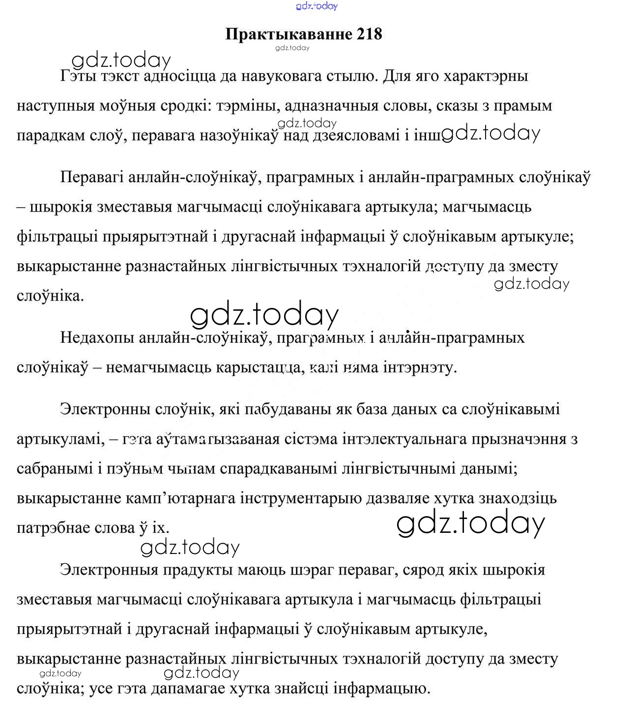На страницах сайта gdz.today вы найдете учебный и вспомогательный материал, направленный на улучшения знаний школьной программы. ГДЗ - онлайн мир знаний Рашальнік да практыкаванняў 218 Учебнику по Белорусскому языку для 9 класса Валочка, Васюковіч Национальный институт образования 2019