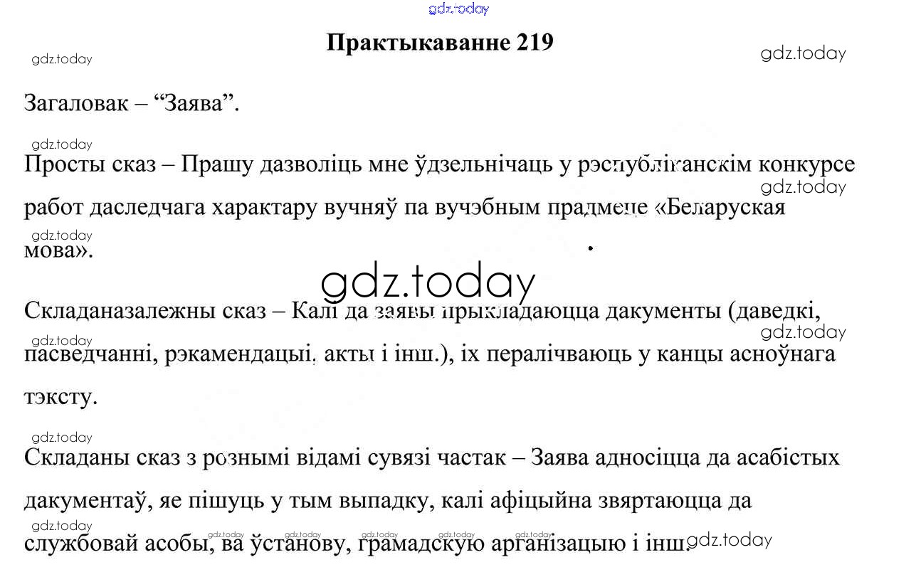 На страницах сайта gdz.today вы найдете учебный и вспомогательный материал, направленный на улучшения знаний школьной программы. ГДЗ - онлайн мир знаний Рашальнік да практыкаванняў 219 Учебнику по Белорусскому языку для 9 класса Валочка, Васюковіч Национальный институт образования 2019