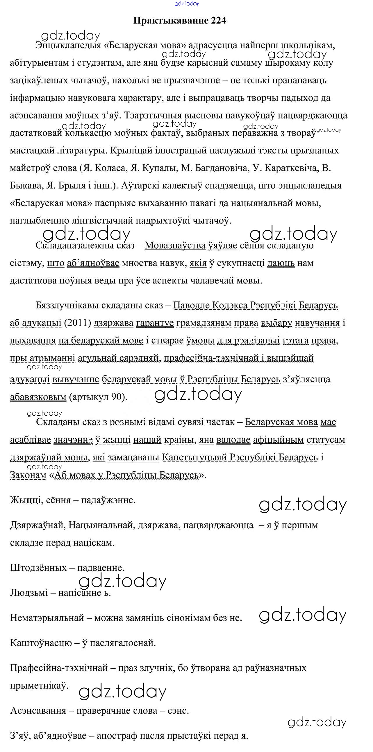 На страницах сайта gdz.today вы найдете учебный и вспомогательный материал, направленный на улучшения знаний школьной программы. ГДЗ - онлайн мир знаний Рашальнік да практыкаванняў 224 Учебнику по Белорусскому языку для 9 класса Валочка, Васюковіч Национальный институт образования 2019