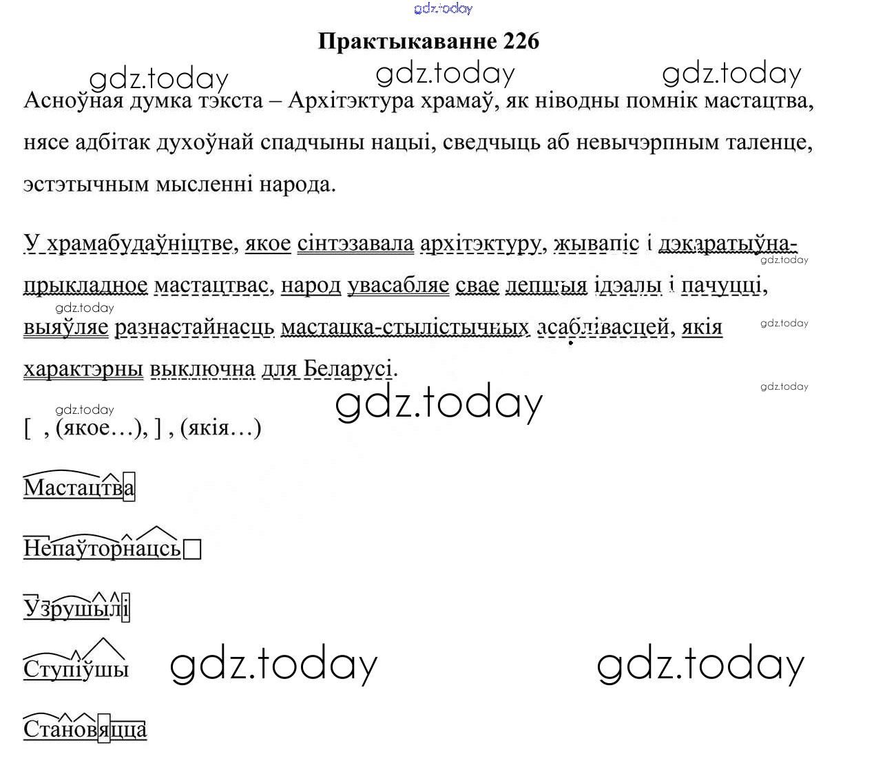 На страницах сайта gdz.today вы найдете учебный и вспомогательный материал, направленный на улучшения знаний школьной программы. ГДЗ - онлайн мир знаний Рашальнік да практыкаванняў 226 Учебнику по Белорусскому языку для 9 класса Валочка, Васюковіч Национальный институт образования 2019