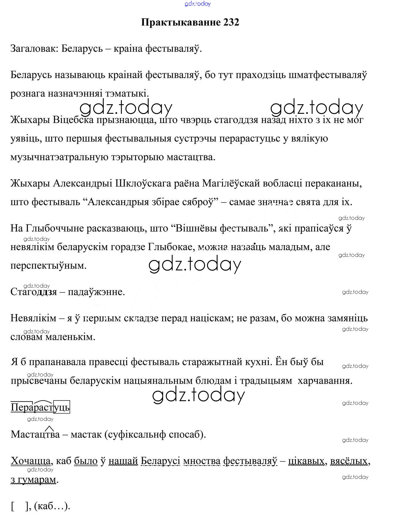 На страницах сайта gdz.today вы найдете учебный и вспомогательный материал, направленный на улучшения знаний школьной программы. ГДЗ - онлайн мир знаний Рашальнік да практыкаванняў 232 Учебнику по Белорусскому языку для 9 класса Валочка, Васюковіч Национальный институт образования 2019