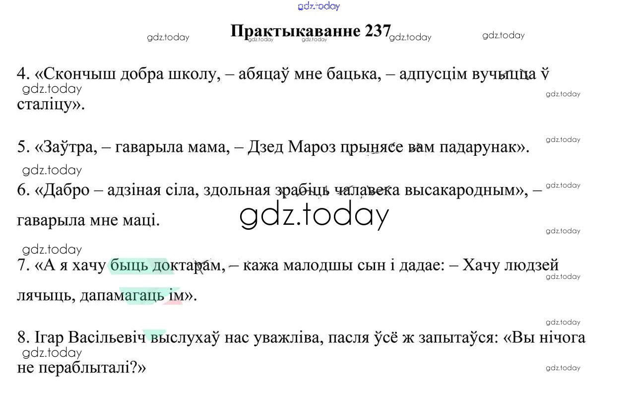 На страницах сайта gdz.today вы найдете учебный и вспомогательный материал, направленный на улучшения знаний школьной программы. ГДЗ - онлайн мир знаний Рашальнік да практыкаванняў 237 Учебнику по Белорусскому языку для 9 класса Валочка, Васюковіч Национальный институт образования 2019