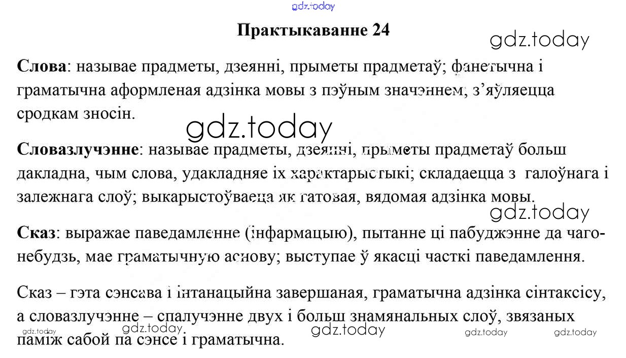 На страницах сайта gdz.today вы найдете учебный и вспомогательный материал, направленный на улучшения знаний школьной программы. ГДЗ - онлайн мир знаний Рашальнік да практыкаванняў 24 Учебнику по Белорусскому языку для 9 класса Валочка, Васюковіч Национальный институт образования 2019