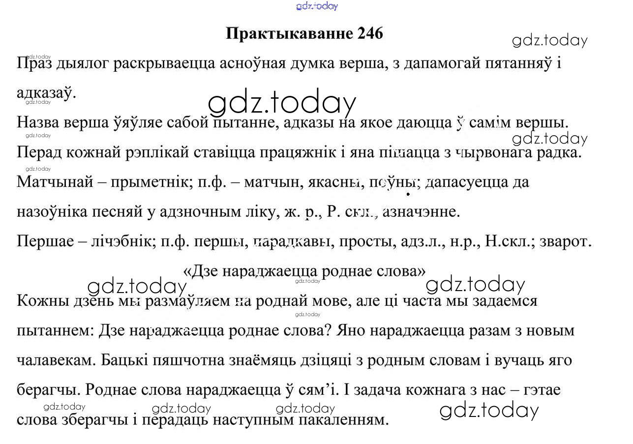 На страницах сайта gdz.today вы найдете учебный и вспомогательный материал, направленный на улучшения знаний школьной программы. ГДЗ - онлайн мир знаний Рашальнік да практыкаванняў 246 Учебнику по Белорусскому языку для 9 класса Валочка, Васюковіч Национальный институт образования 2019