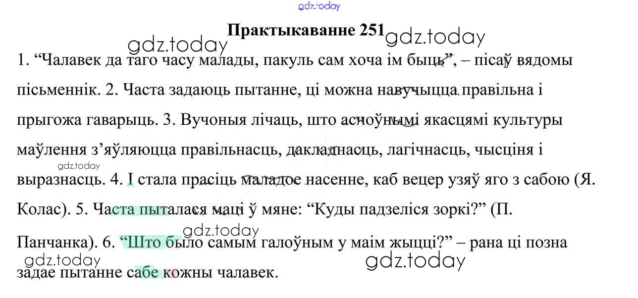 На страницах сайта gdz.today вы найдете учебный и вспомогательный материал, направленный на улучшения знаний школьной программы. ГДЗ - онлайн мир знаний Рашальнік да практыкаванняў 251 Учебнику по Белорусскому языку для 9 класса Валочка, Васюковіч Национальный институт образования 2019