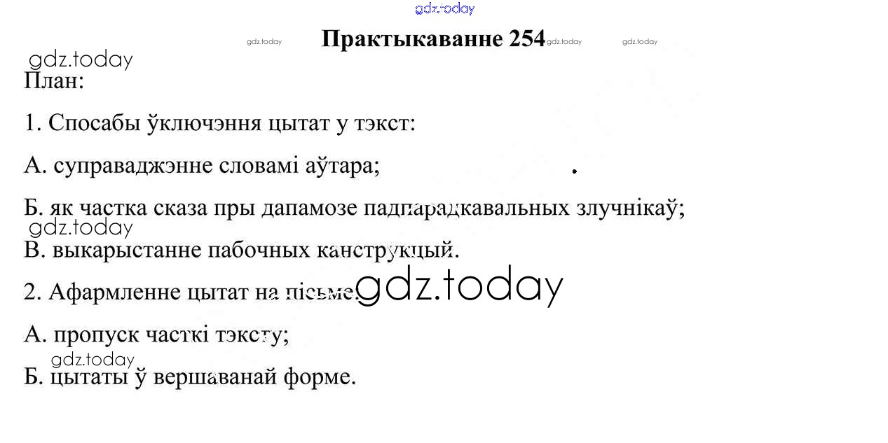 На страницах сайта gdz.today вы найдете учебный и вспомогательный материал, направленный на улучшения знаний школьной программы. ГДЗ - онлайн мир знаний Рашальнік да практыкаванняў 254 Учебнику по Белорусскому языку для 9 класса Валочка, Васюковіч Национальный институт образования 2019