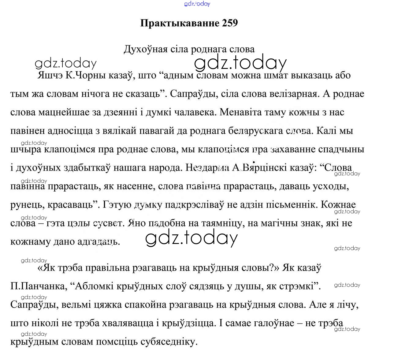 На страницах сайта gdz.today вы найдете учебный и вспомогательный материал, направленный на улучшения знаний школьной программы. ГДЗ - онлайн мир знаний Рашальнік да практыкаванняў 259 Учебнику по Белорусскому языку для 9 класса Валочка, Васюковіч Национальный институт образования 2019