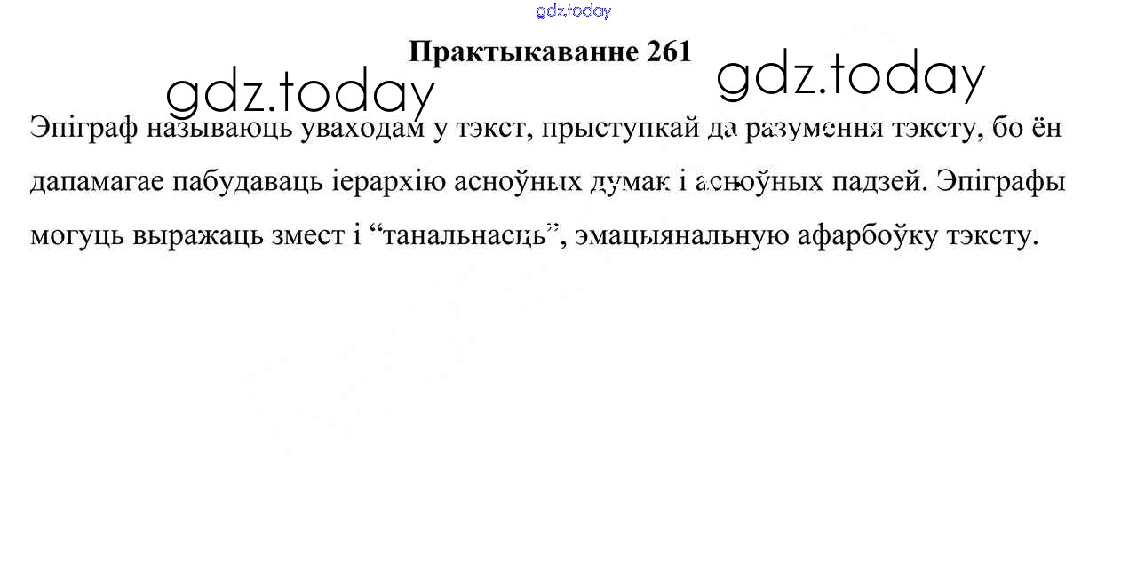 На страницах сайта gdz.today вы найдете учебный и вспомогательный материал, направленный на улучшения знаний школьной программы. ГДЗ - онлайн мир знаний Рашальнік да практыкаванняў 261 Учебнику по Белорусскому языку для 9 класса Валочка, Васюковіч Национальный институт образования 2019