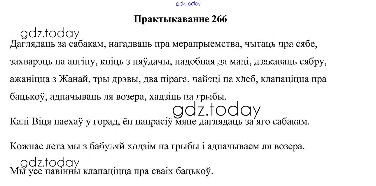 На страницах сайта gdz.today вы найдете учебный и вспомогательный материал, направленный на улучшения знаний школьной программы. ГДЗ - онлайн мир знаний Рашальнік да практыкаванняў 266 Учебнику по Белорусскому языку для 9 класса Валочка, Васюковіч Национальный институт образования 2019