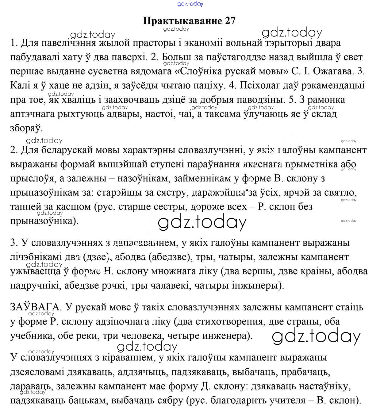 На страницах сайта gdz.today вы найдете учебный и вспомогательный материал, направленный на улучшения знаний школьной программы. ГДЗ - онлайн мир знаний Рашальнік да практыкаванняў 27 Учебнику по Белорусскому языку для 9 класса Валочка, Васюковіч Национальный институт образования 2019